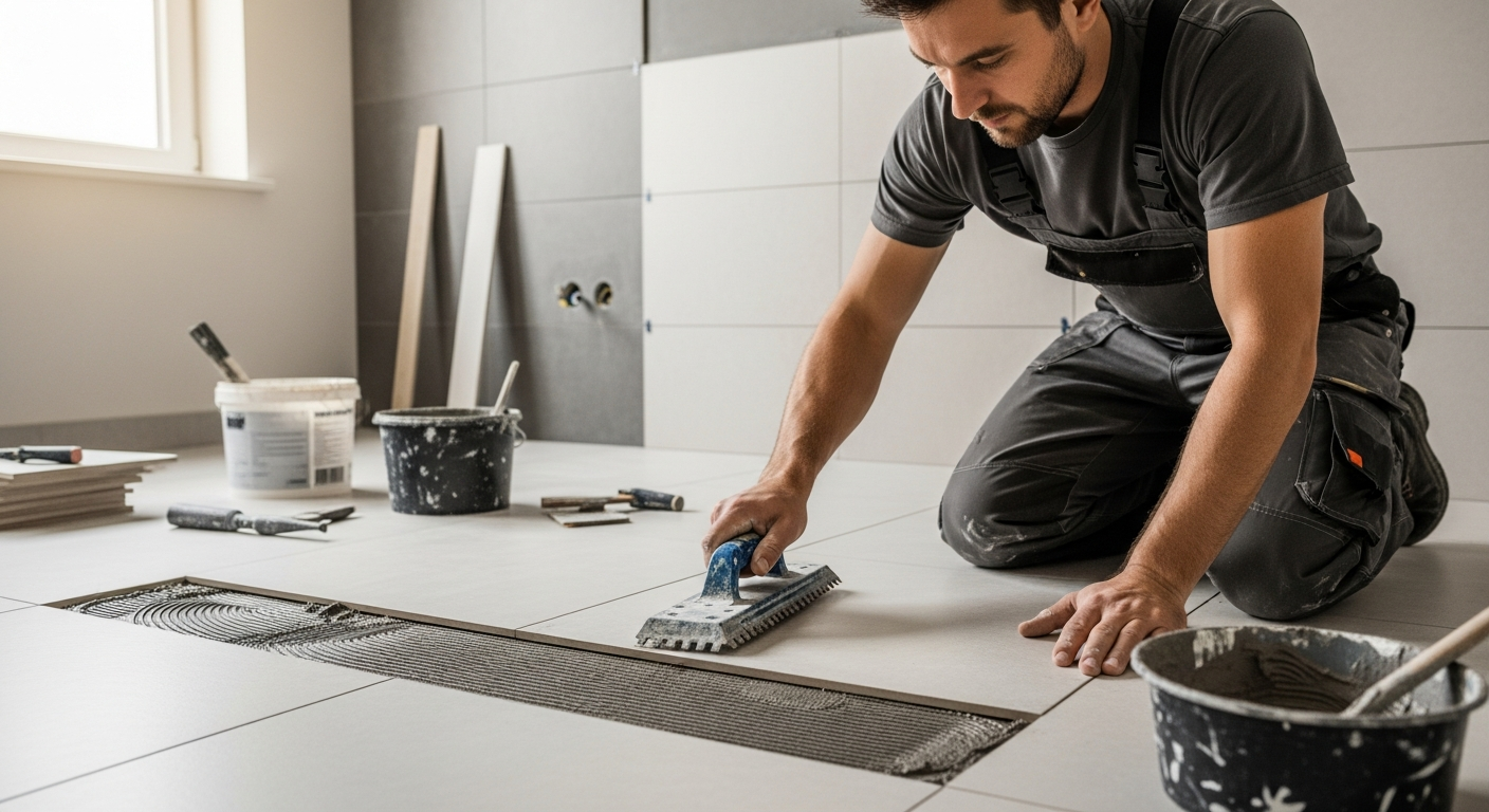 | Didelio formato plytelių klojimas | 25 - 45 | Didelės plytelės (pvz., 60x60 cm ir didesnės), specialūs klijai, kruopštus išlyginimas. |